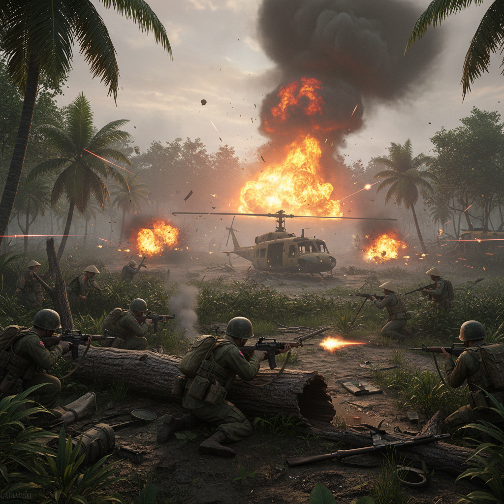 Hell Let Loose: Vietnam terá seis novos mapas no lançamento, cada um descrito pela Expression Games como uma mistura de selva densa, deltas sinuosos e áreas abertas perigosas. A batalha não se limita ao solo, pois os helicópteros militares desempenham múltiplas funções. Do transporte de tropas ao apoio de fogo, reconhecimento e lançamentos táticos, eles são uma ferramenta essencial em qualquer partida.
