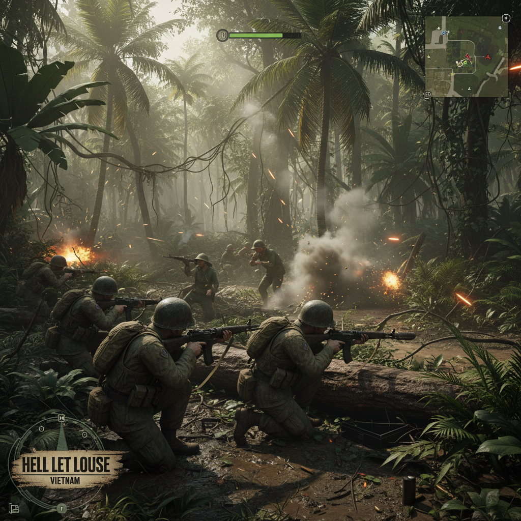 Hell Let Loose Vietnam promete uma experiência de guerra autêntica, onde o trabalho em equipe será fundamental para o sucesso. O título contará com seis novos mapas ambientados no Vietnã, com terrenos variados que incluem densas florestas tropicais, deltas sinuosos e clareiras abertas, oferecendo desafios táticos únicos.