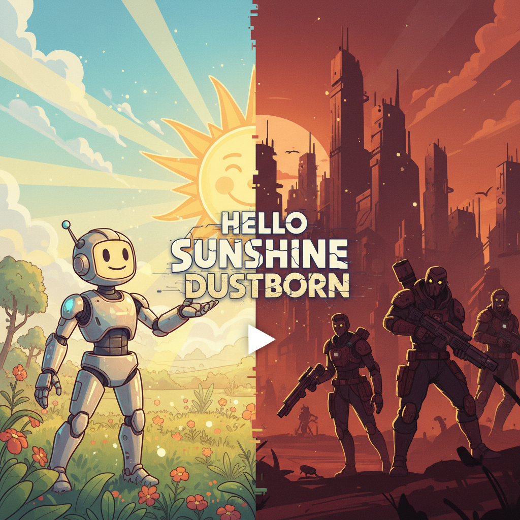 Em Hello Sunshine, os jogadores assumem o papel do ‘último funcionário’ de um império corporativo que ruiu, tendo como missão decidir o destino do que resta do mundo. A mecânica de sobrevivência traz elementos únicos: durante o dia, é necessário permanecer na sombra do mecha para evitar o sol escaldante, enquanto à noite o robô serve como fonte de calor para enfrentar as baixas temperaturas do deserto.
