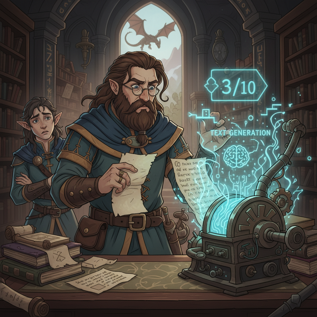Tivemos um grupo limitado experimentando ferramentas para gerar texto, mas os resultados atingiram no máximo 3/10, e essas ferramentas são para fins de pesquisa, não para uso em Divinity. Até meus piores primeiros rascunhos – e há MUITOS deles – são pelo menos um 4/10 (embora o Swen possa discordar :p), e a quantidade de iteração necessária para levar até linhas individuais à qualidade que desejamos é enorme. Do stub inicial à linha que gravamos e enviamos, há muitos olhos e mãos envolvidos em acertar um diálogo.’
